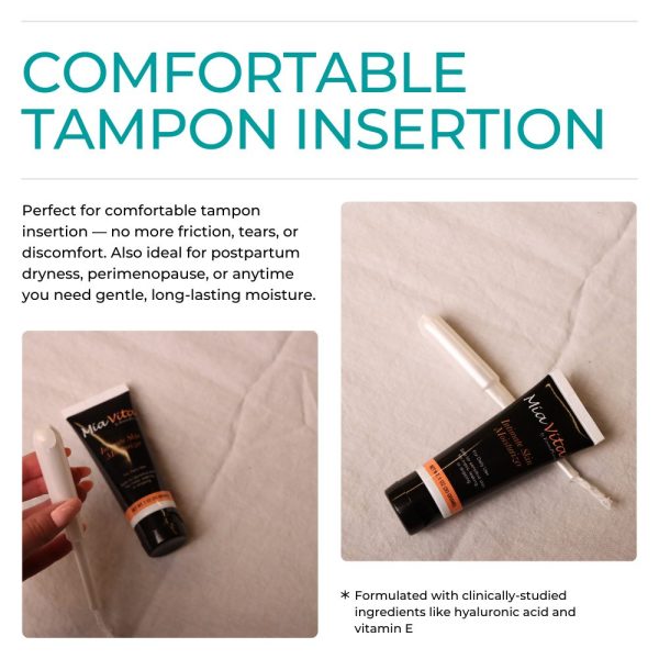 From the first use, immediate hydration for dry vulvar skin. Tampon glides into vaginal tissue easily when Mia Vita Gel is applied.