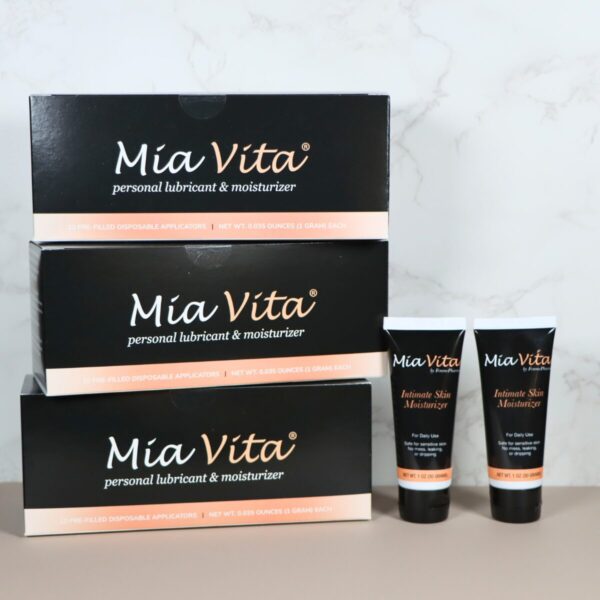 Women’s preferred Mia Vita® Personal Lubricant & Vaginal Moisturizer relieves vaginal dryness on contact. Reduces vaginal discomfort and painful sex by restoring your natural lubrication. Enjoy sex again! Formulated with natural ingredients like Hyaluronic Acid and Vitamin E and made without hormones. 10 single-use prefilled applicators per box. Use as a daily vaginal moisturizer and also as a personal lubricant during intercourse.